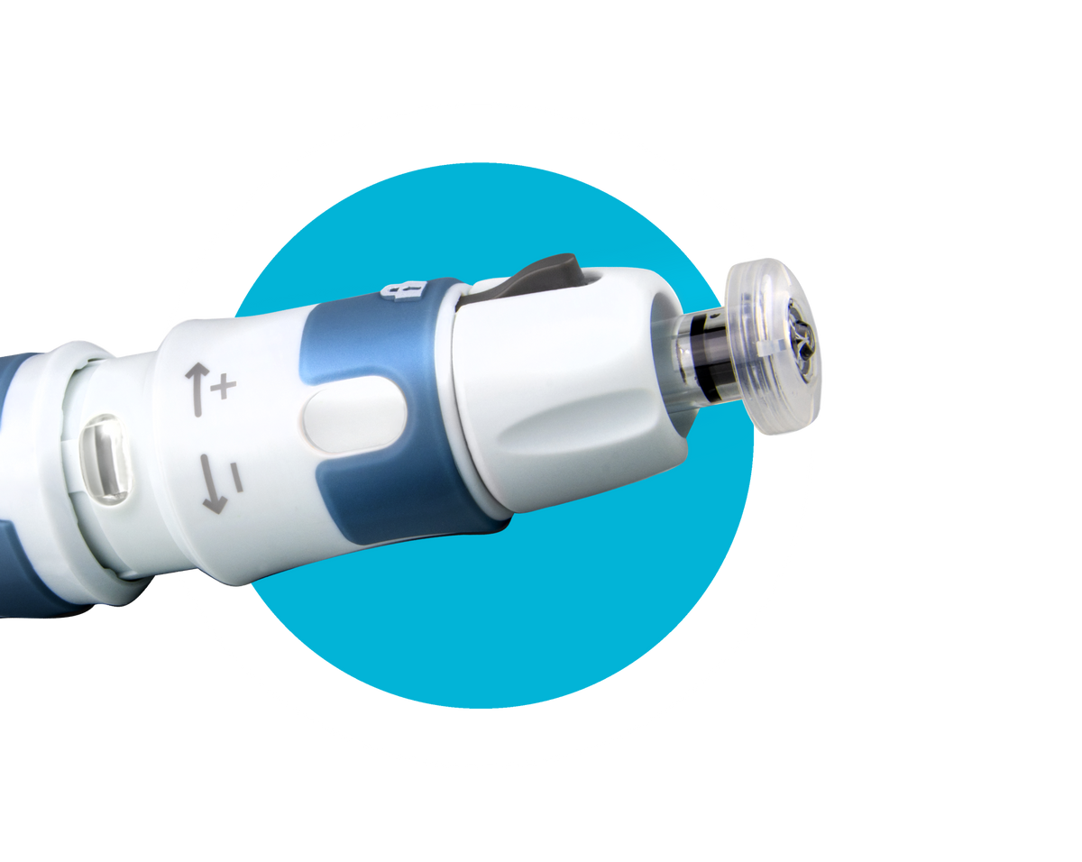 You can also adjust the pressure of the jet stream by using Injuset's comfort ring. This is useful when injecting insulin into sensitive skin areas or if you're uncomfortable with the default pressure setting.